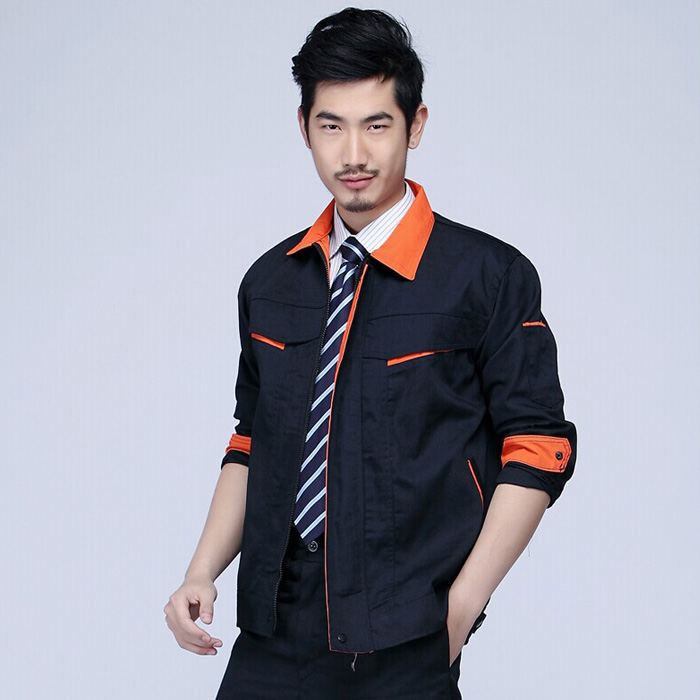 JL-QD250冬季工作服,這是一款此款以黑色為主色,胸前衣兜和筆袋采用橘色搭配,醒目,工業感強。前兜撞色拼接,走線細致,實用性強。左中腰間口袋均采用雙層設計,傾斜線條,穩重大氣的工作服,穿著舒服,且保暖。