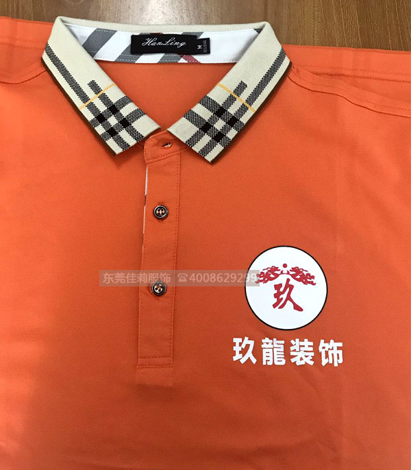 玖龍裝飾的吳總是通過老客戶介紹認識的,因為是做裝飾行業,所以對夏季工作服的要求,是吸汗透氣,而且形象亮眼,給人一種時尚低調有內涵的感覺。吳總選中了一款橙色T恤衫,非常感謝吳總的理解,雖然延遲了交貨日期,但還是非常順利交貨了。
