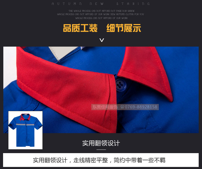 高品質(zhì)全新形象,經(jīng)典設計,立體裁剪,時尚翻領(lǐng),質(zhì)感有型。走線細致,優(yōu)質(zhì)暗扣,實用性強。胸前口袋撞色拼接,雙明線縫制既時尚又耐用,即使在下班之余也可以穿。