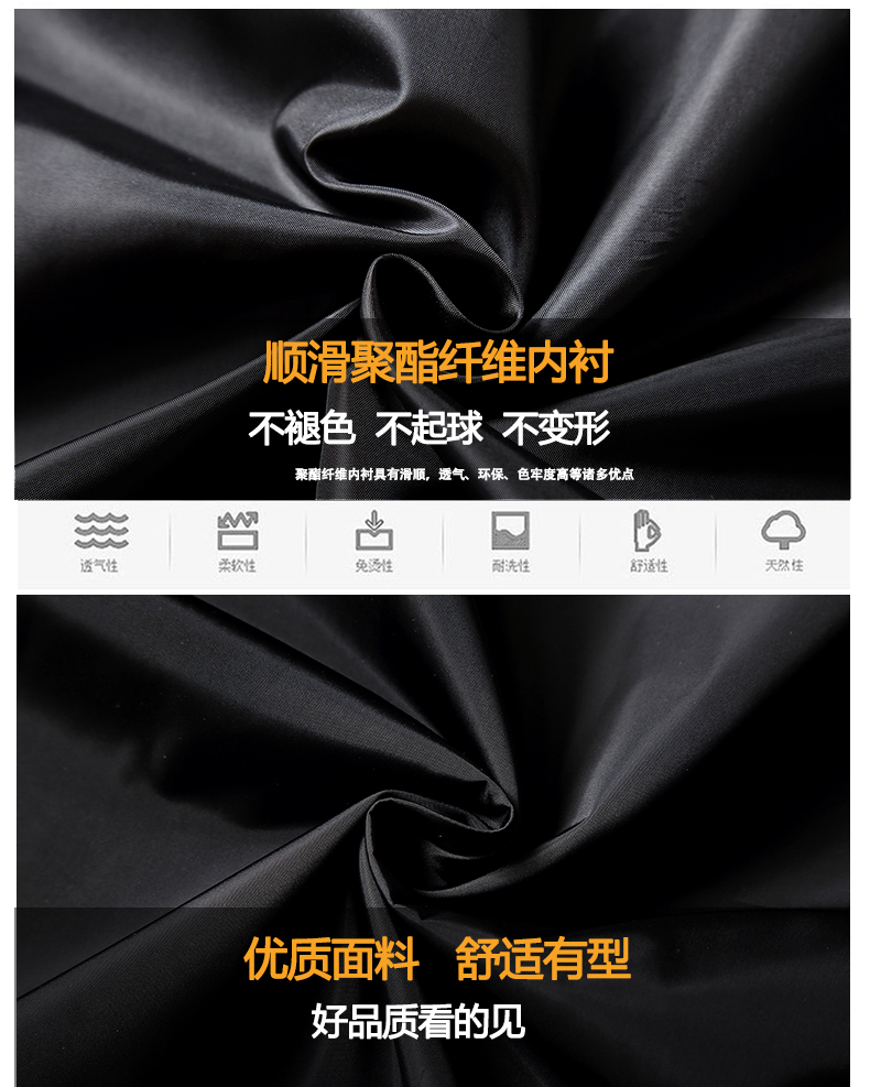 采用超順滑聚酯纖維內(nèi)襯,不起球,不褪色,不變形。防靜電內(nèi)襯,為冬天起到更實用的穿著